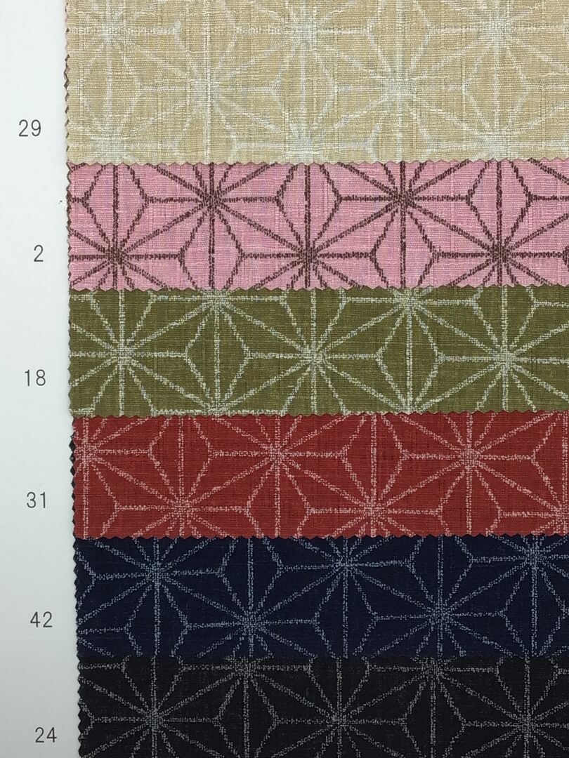 綿のドビークロスの上に日本の伝統模様の麻の葉柄を載せています。